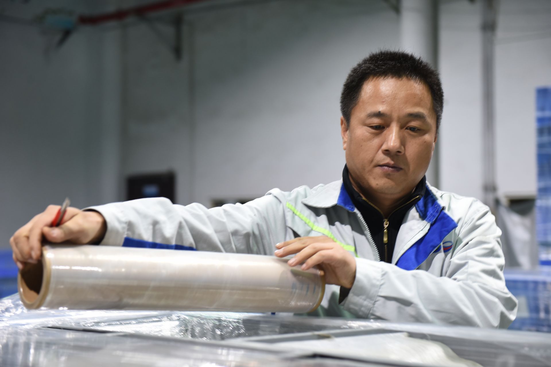 深夜,将加工好的遮阳板打包发货 邱锦/摄(记者 邱锦 通讯员 王碧娟 责任编辑 龚开哲)