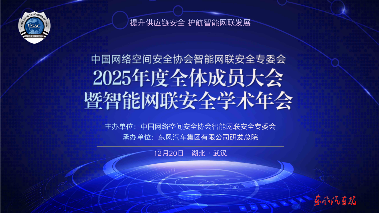 【东风汽车报武汉讯】 12月20日,以“提升供应链安全 护航智能网联发展”为主题,由东风汽车研发总院承办的中国网络空间安全协会-智能网联安全专委会全体成员大会暨智能网联安全学术年会在武汉召开。来自中央网信办、中国科学院、华中科技大学等单位的相关领导、专家代表出席会议。