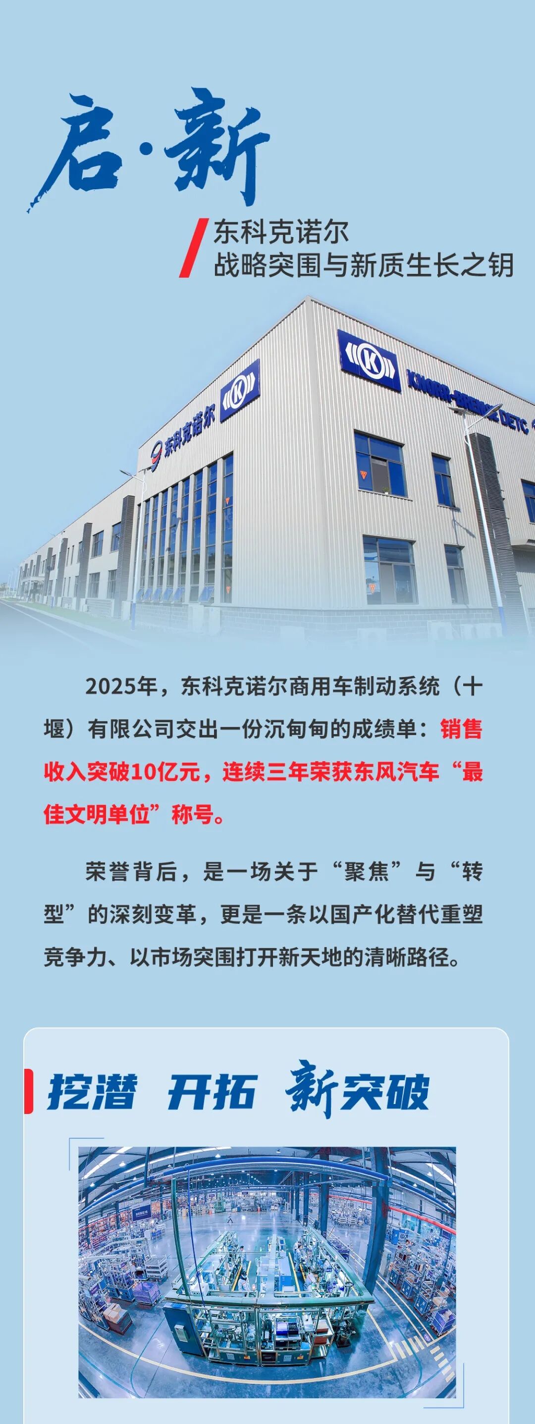启•新 | 东科克诺尔的战略突围与新质生长之钥 2026-03-25 20:41 0 “启”文明争先之势,“新”价值赋能之章。今天,一起走进东风汽车集团有限公司2025年度最佳文明单位——东科克诺尔商用车制动系统(十堰)有限公司,解码其战略突围与新质生长的发展之道。